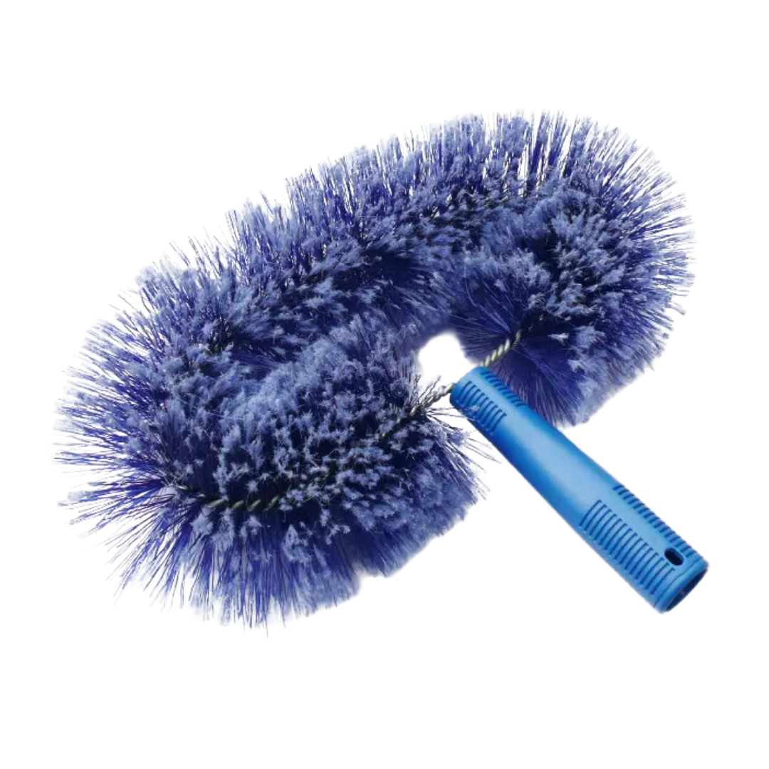 Cepillo colector de polvo con fibras suaves tipo erizo que atrapan polvo, pelusas y residuos ligeros sin levantar partículas al aire. Ideal para estanterías, marcos, equipos y superficies delicadas.