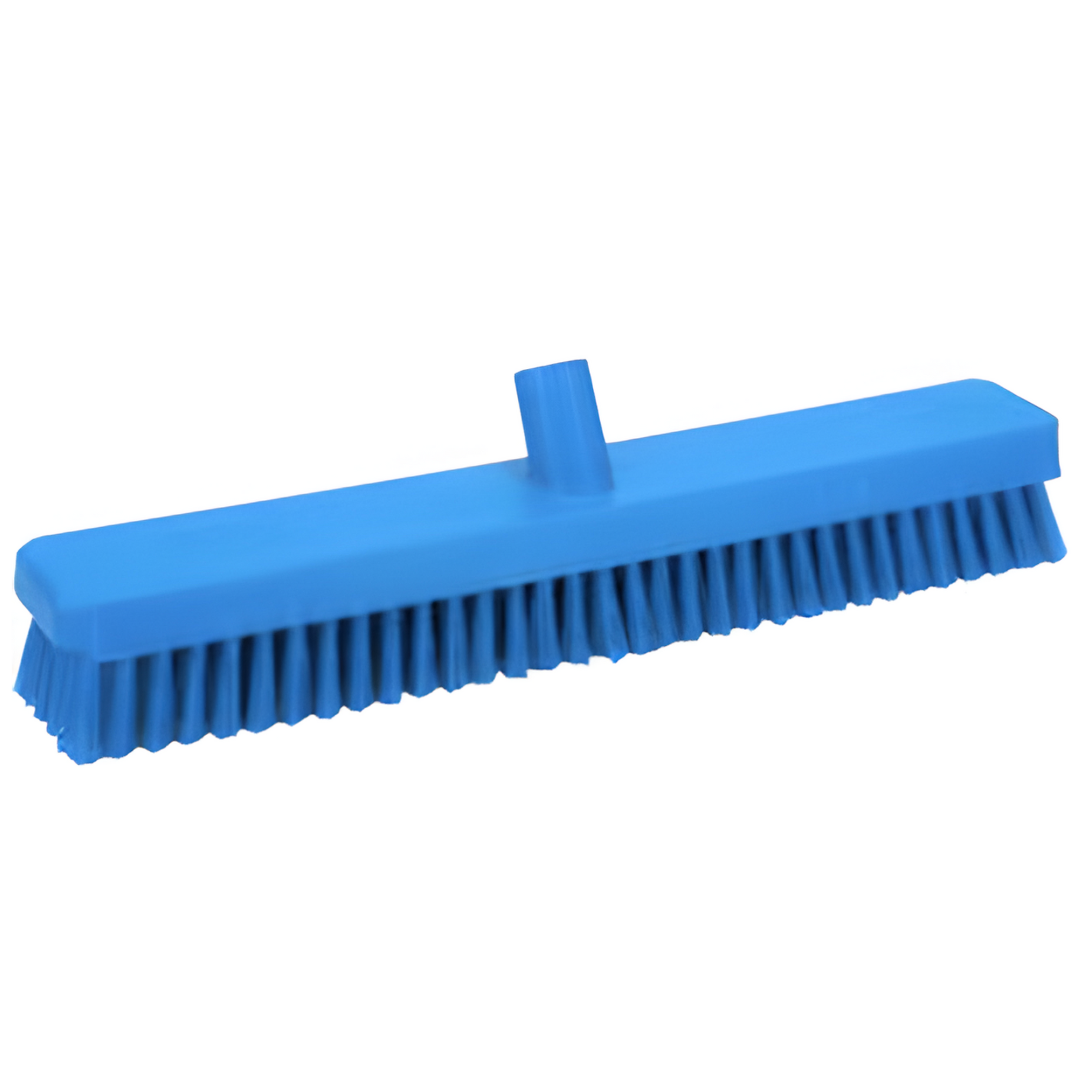 Cepillo industrial de cerdas duras diseñado para fregar pisos y remover suciedad incrustada en zonas húmedas o de alto tránsito. Ideal para uso en plantas de alimentos, cocinas industriales y áreas de limpieza profunda.
