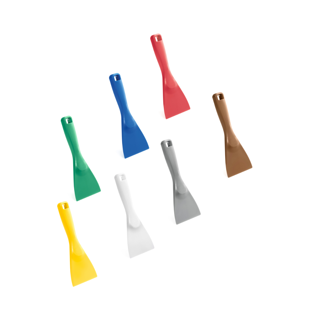 Es una herramienta ligera, resistente y fácil de limpiar, perfecta para industrias alimentarias, panadería, repostería, carnicería y trabajos de higiene profesional.