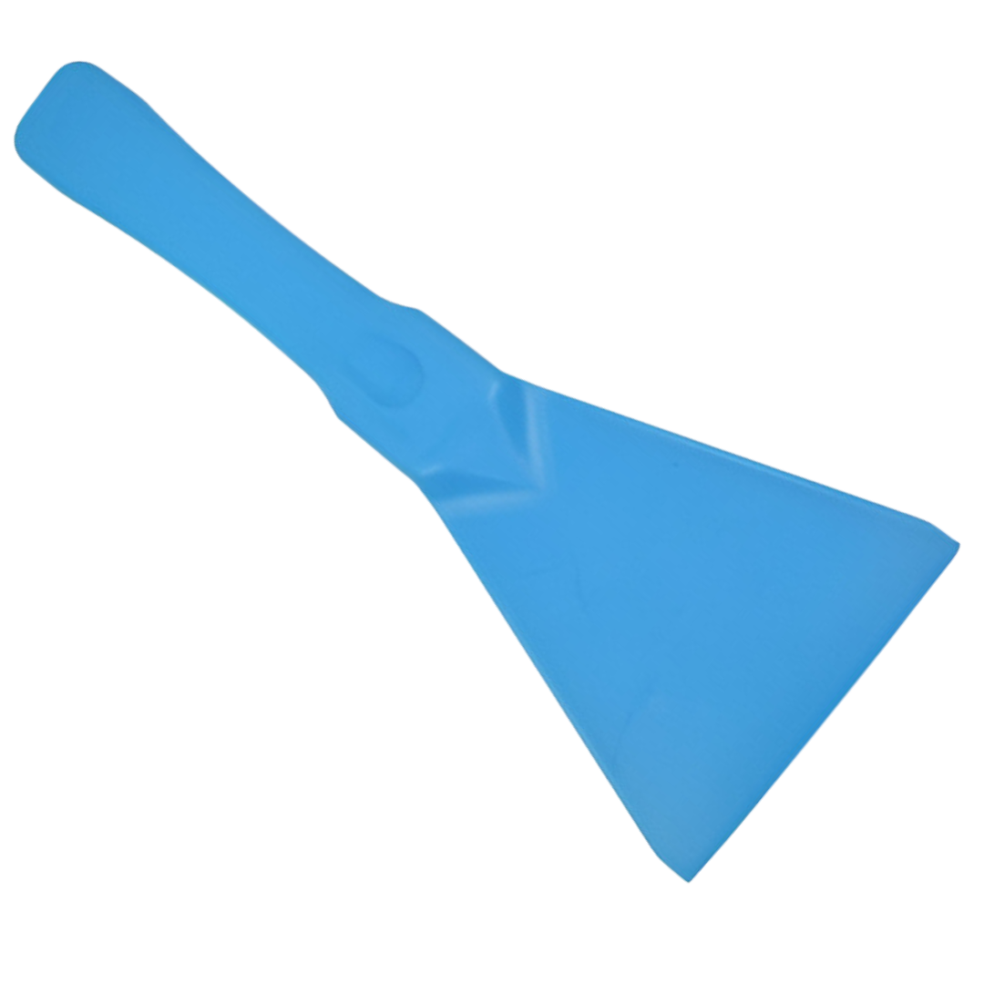 Espátula higiénica de mayor ancho para desprender residuos difíciles en superficies grandes.