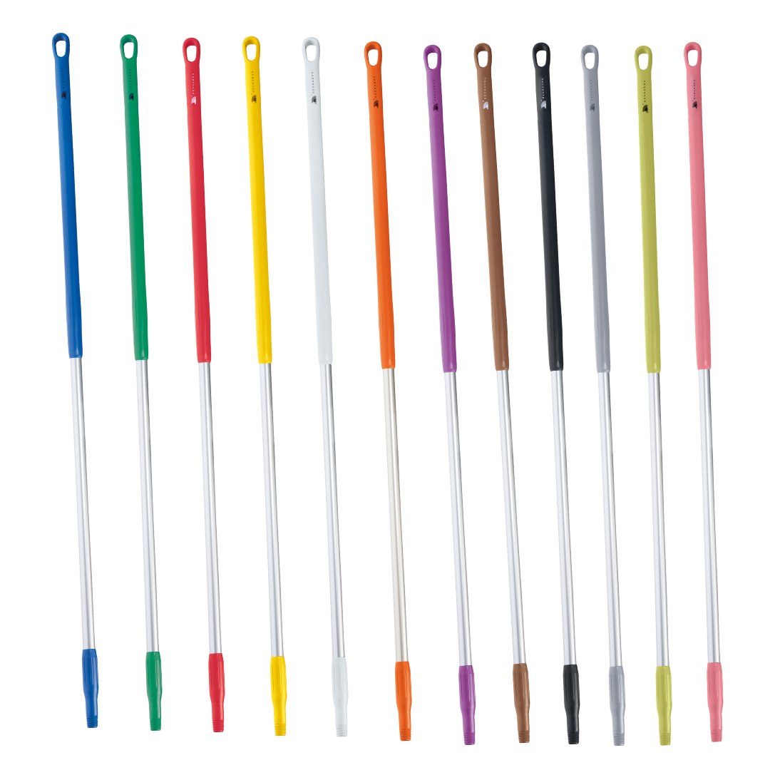El mango ofrece 1500 mm de longitud, permitiendo mayor alcance y menos esfuerzo físico durante la limpieza. Su estructura de aluminio con diámetro de 32 mm le da una excelente resistencia a la flexión y al trabajo continuo con herramientas pesadas.