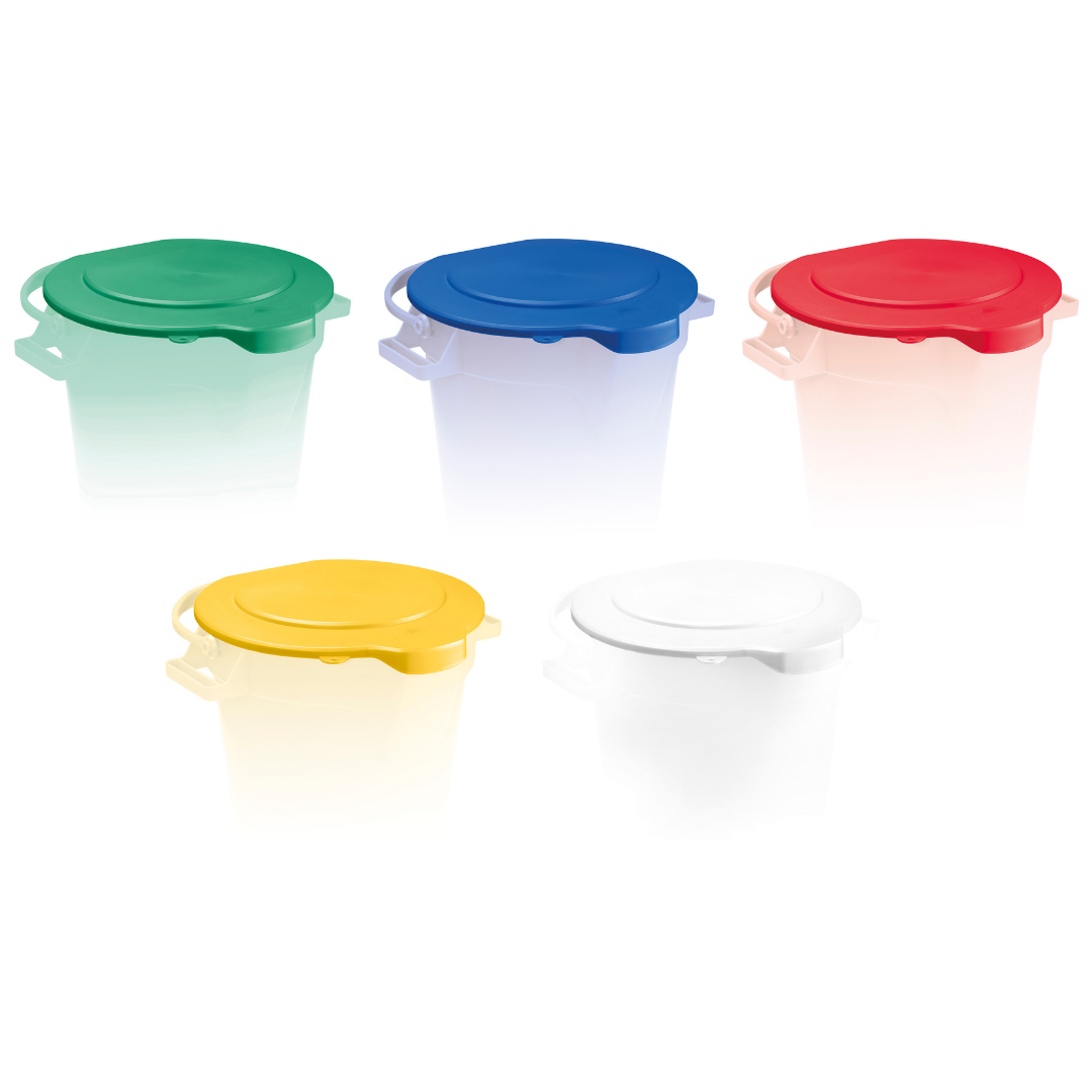 Diseñada para complementar y mejorar el uso de cubos industriales, proporcionando una cobertura segura, higiénica y funcional para el almacenamiento y transporte de líquidos, productos químicos y soluciones de limpieza.